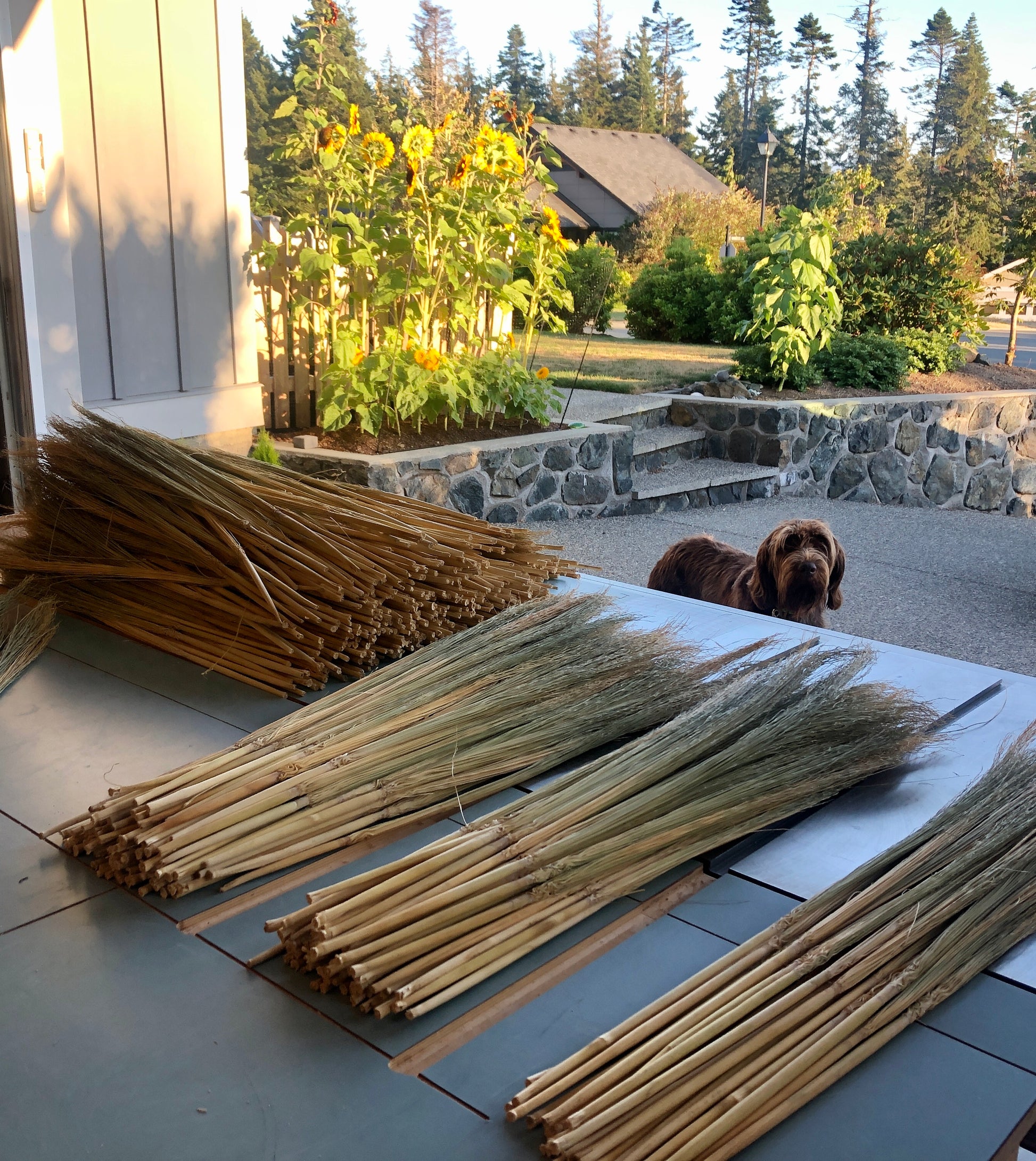 Soak the broomcorn in a bucket ensuring the stalks are submerged in warm water for approximately 2 hours prior to use. Allow to air dry fully before storing.